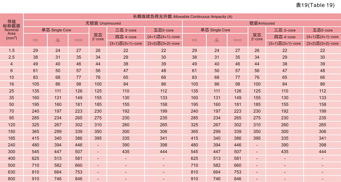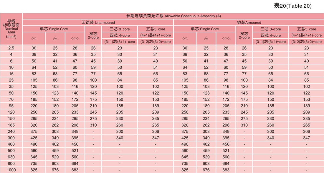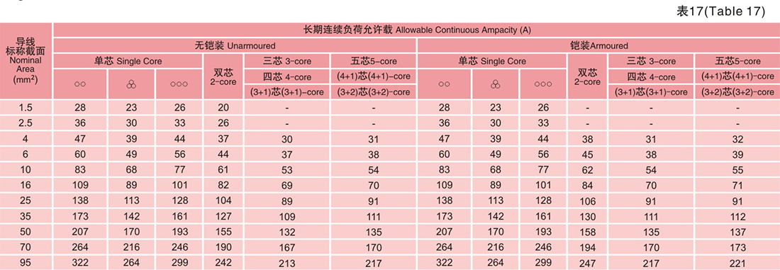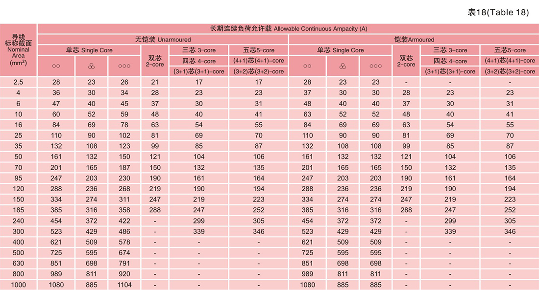 0.6/1kV銅導(dǎo)體PV℃絕緣PV℃護套阻燃和非阻燃電力電纜在空氣中敷設(shè)長期連續(xù)負荷允許載流量。