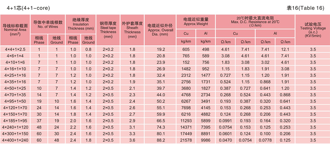 電纜結(jié)構(gòu)尺寸(見表1-16)