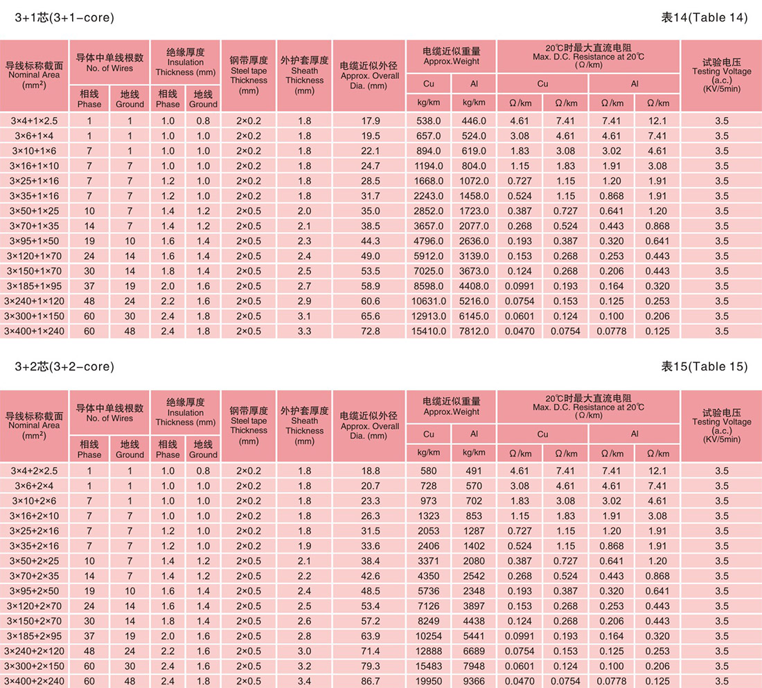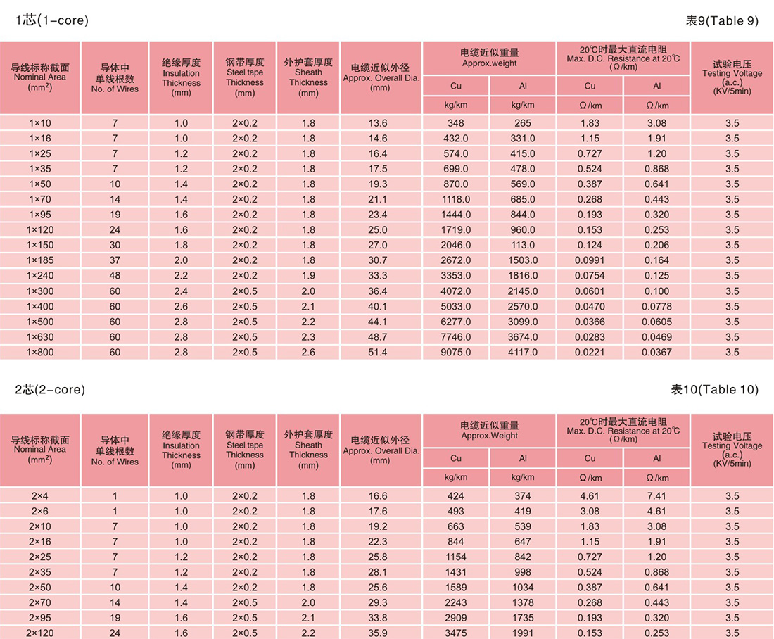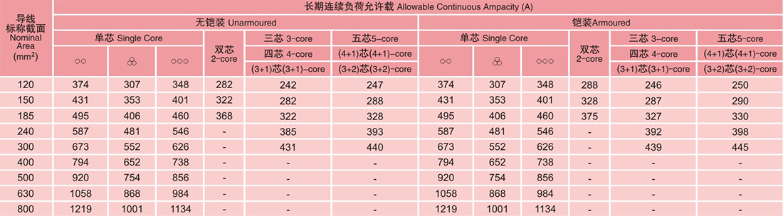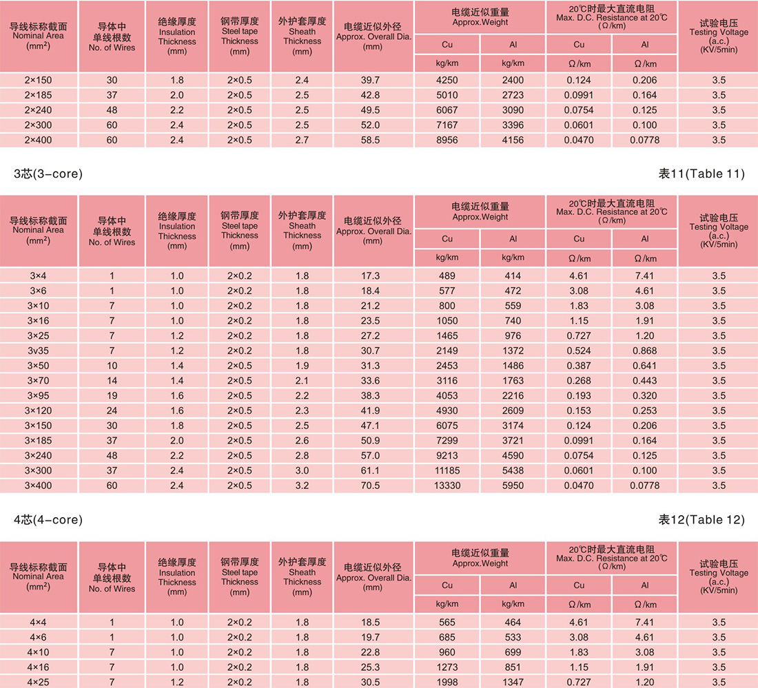 注:單芯用于交流系統(tǒng),采用非磁性金屬帶