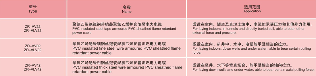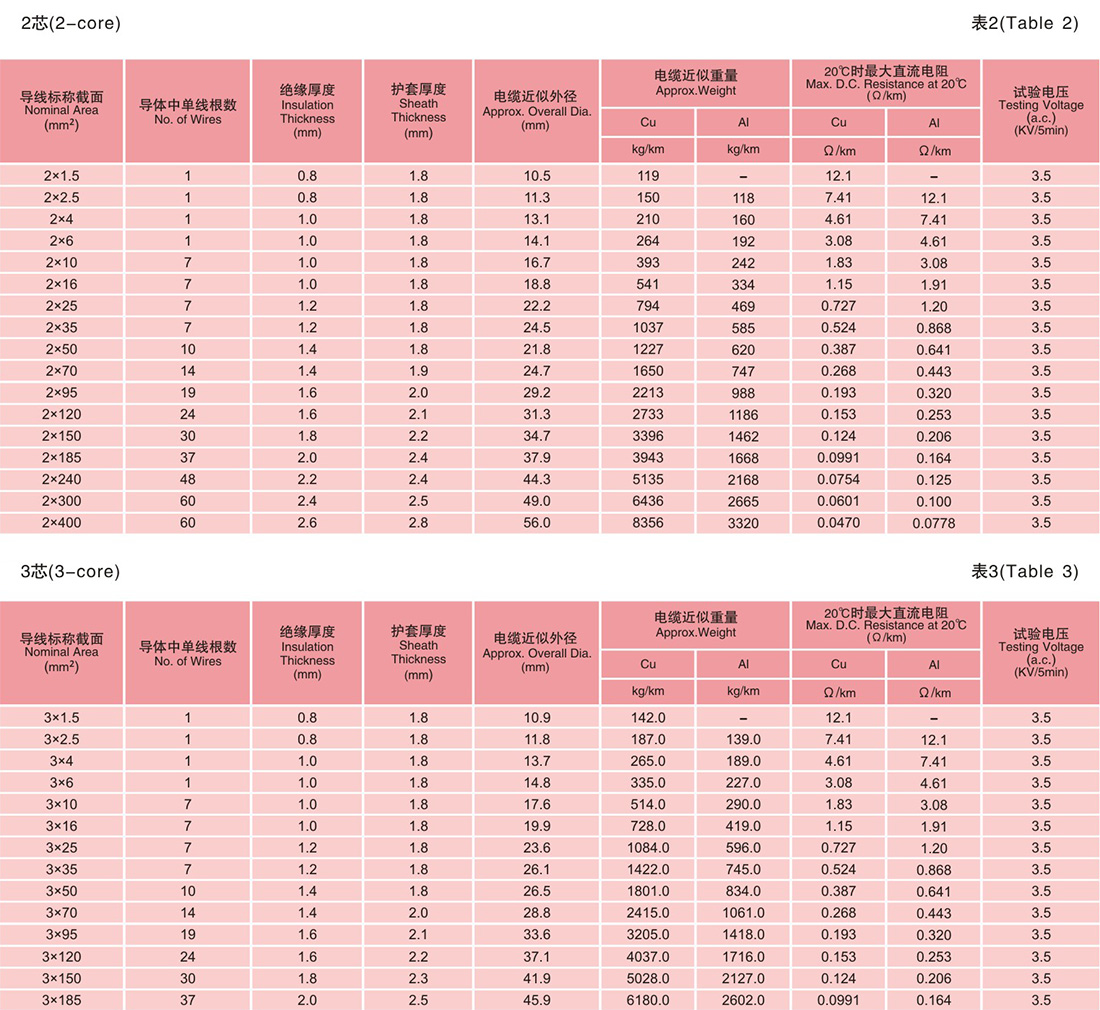 0.6/1kV PV℃絕緣鋼帶鎧裝PV℃護套阻燃或非阻燃電力電纜(見表9-16)