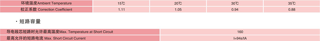 - 短路時(最長持續(xù)時間不超過5s) 電纜導(dǎo)體的最高溫度不超過160C。