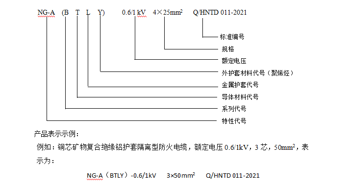產(chǎn)品用型號、規(guī)格(額定電壓、芯數(shù)、標(biāo)稱截面)及標(biāo)準(zhǔn)編號表示。