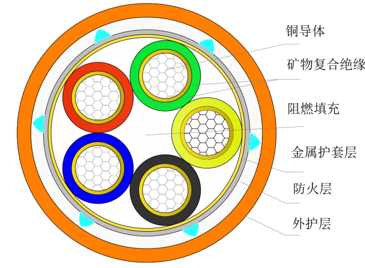 礦物復(fù)合絕緣鋁護(hù)套隔離型防火電纜結(jié)構(gòu)示意圖:
